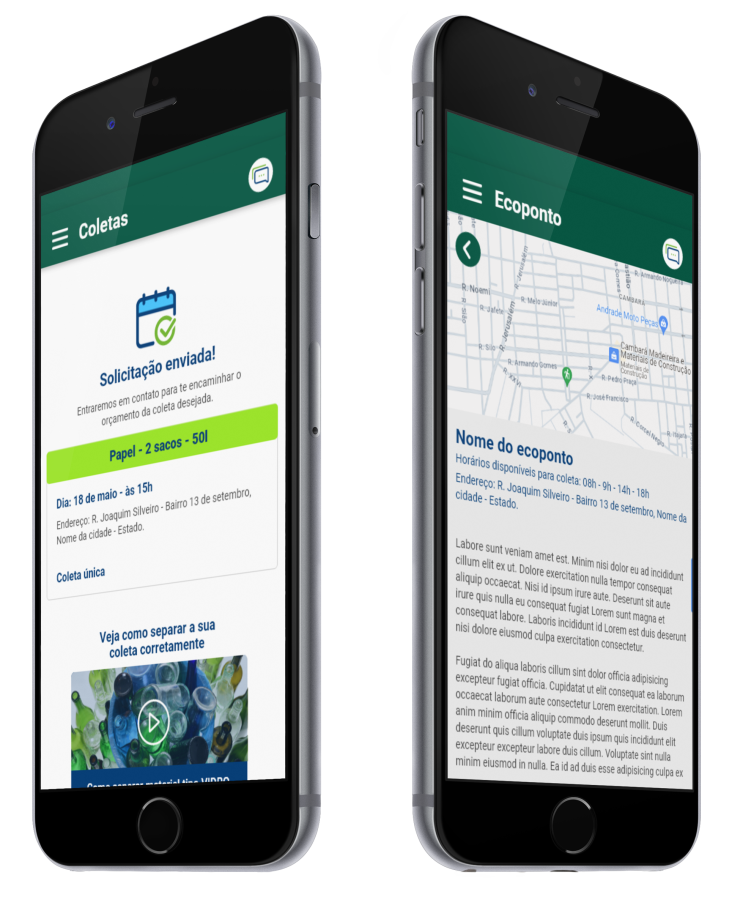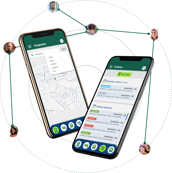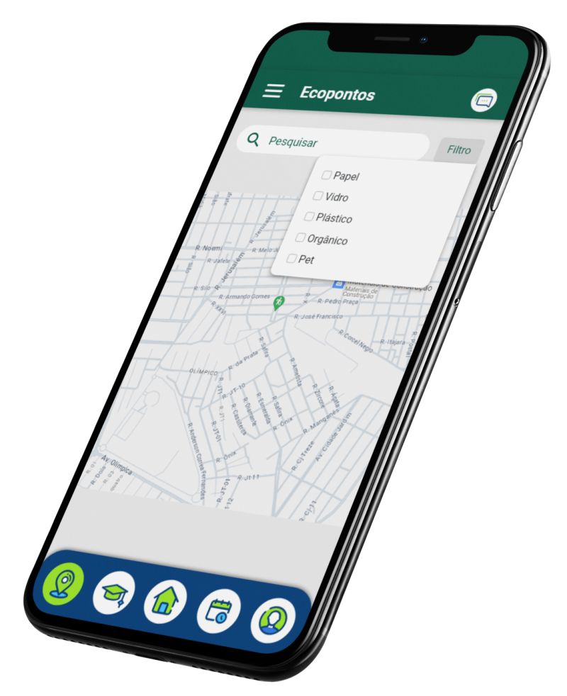 Mapa intuitivo com diversos locais para a destinação de resíduos, serviço de coletas pontuais e planos de coletas recorrentes, para facilitar a vida da família que deseja descartar seus resíduos de forma simples e gerando impactos positivos. Tutorias e cursos para a melhorar a gestão de resíduos em sua casa e muito mais.