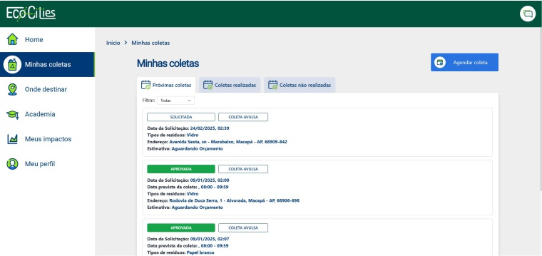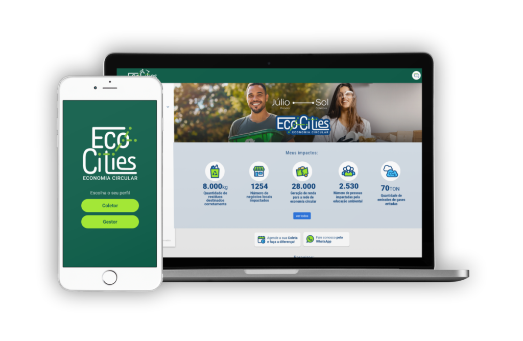 A EcoCities é uma plataforma (app e sistema web) que conecta pessoas, empresas e prefeituras para otimizar a coleta e destinação de resíduos, incentivando a economia circular.