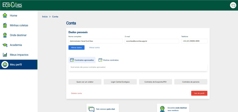 Atualize seus dados pessoais, gerencie seus contratos e explore oportunidades de trabalho dentro da EcoCities.