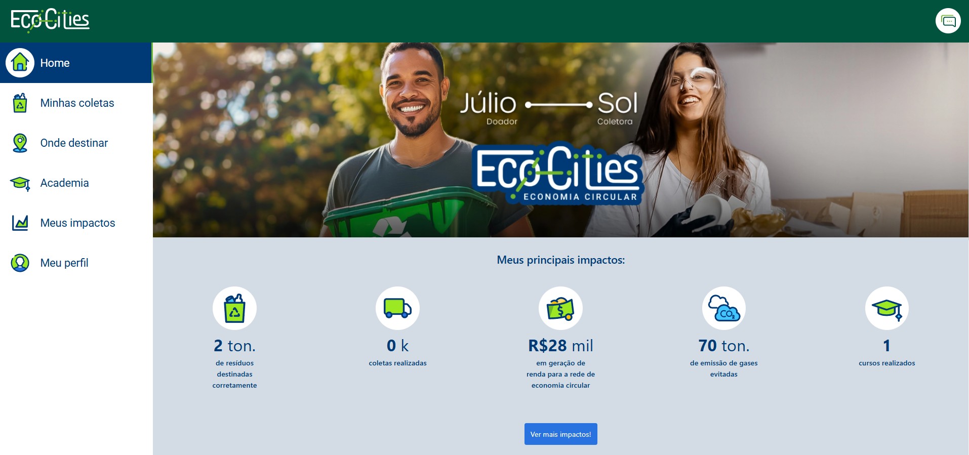Seja você uma cooperativa, um negócio local, uma ONG ou qualquer outro agente de transformação, a EcoCities abre caminhos para ampliar seu alcance, valorizar o trabalho com resíduos e gerar impactos positivos.