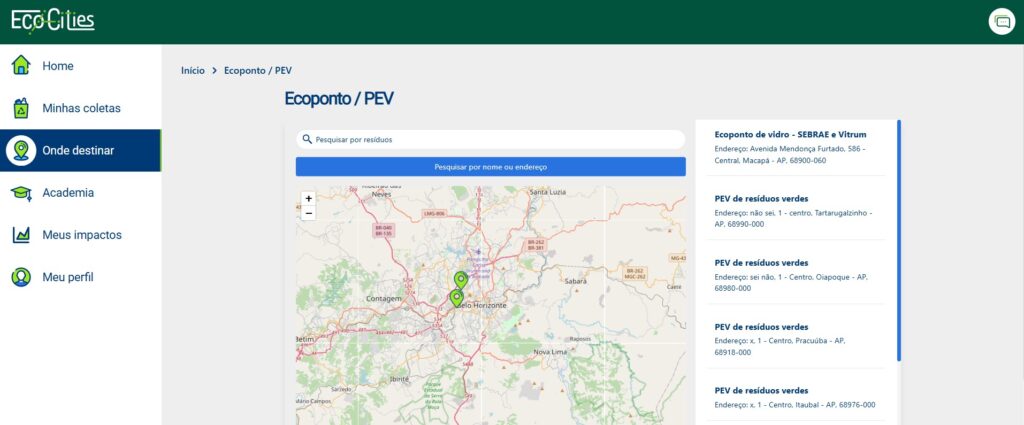Prefeituras podem gerir ecopontos (PEVs) com mais eficiência, oferecer educação ambiental via “Academia” do app e promover a economia circular ao conectar seus munícipes a negócios locais de reciclagem e reuso.